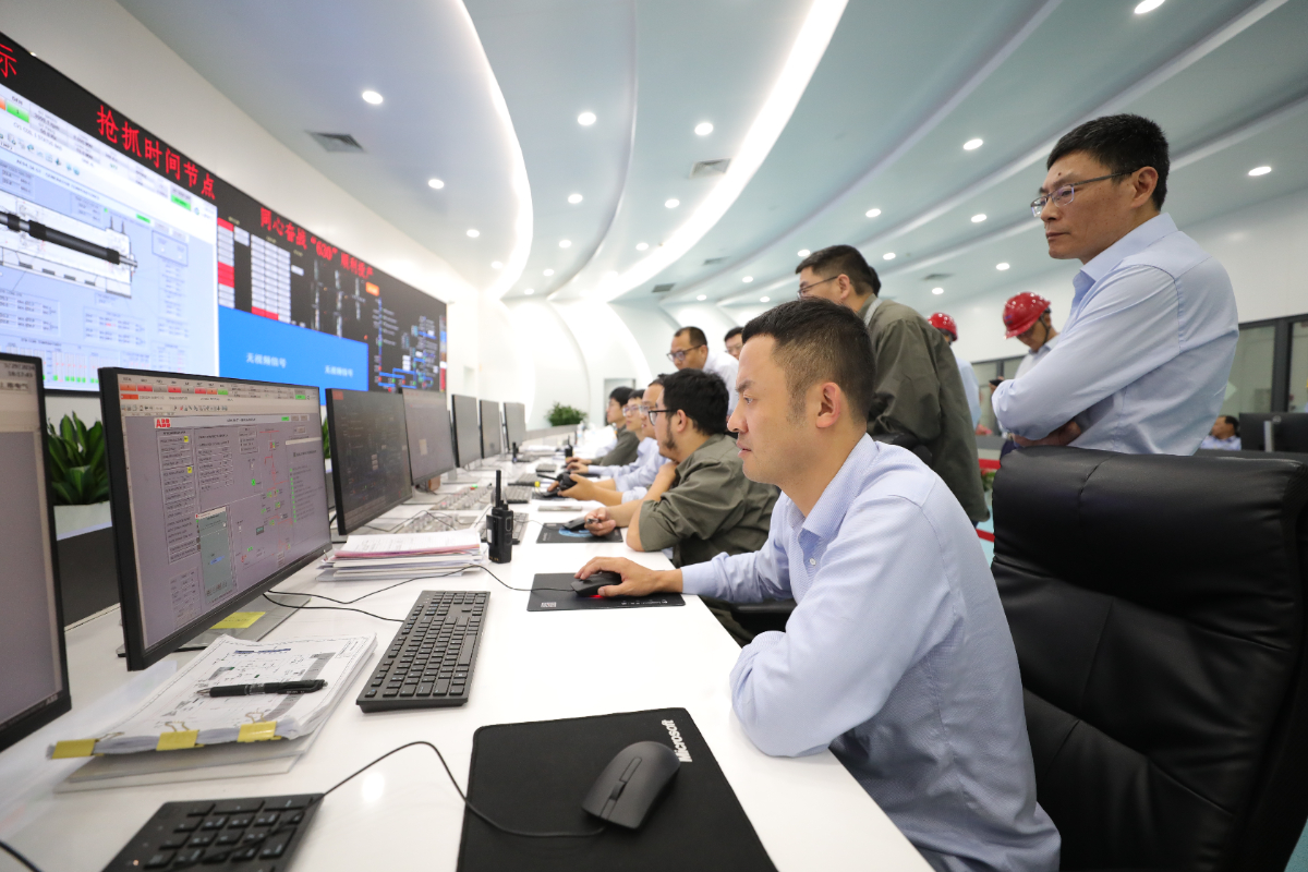 镇联电公司燃机异地迁建改造项目集控室中,各专业骨干人员昼夜奋战、协同发力。 郑凯 摄