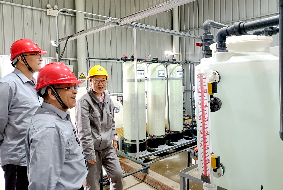 新天煤化工、白马湖实验室领导共同见证顺利产出酸碱。 李海胜 摄
