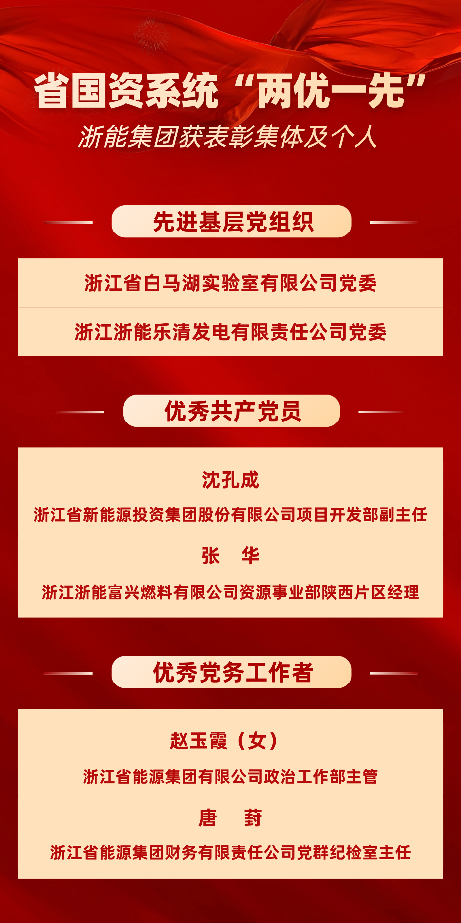 本网讯 日前,浙江省国资委党委公布“浙江省国有企业优秀共产党员、优秀党务工作者和先进基层党组织表彰对象名单”,爱情岛论坛 2个集体获评“先进基层党组织”、2名个人获评“优秀共产党员”、2名个人获评“优秀党务工作者”。