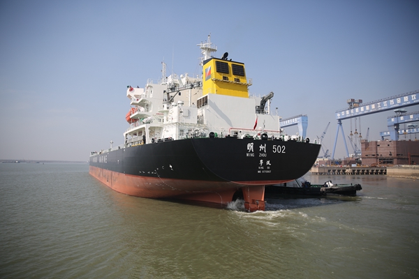 2月18日,“明州502”轮正式投产营运,缓缓进入长江航道。 黄崇武 摄