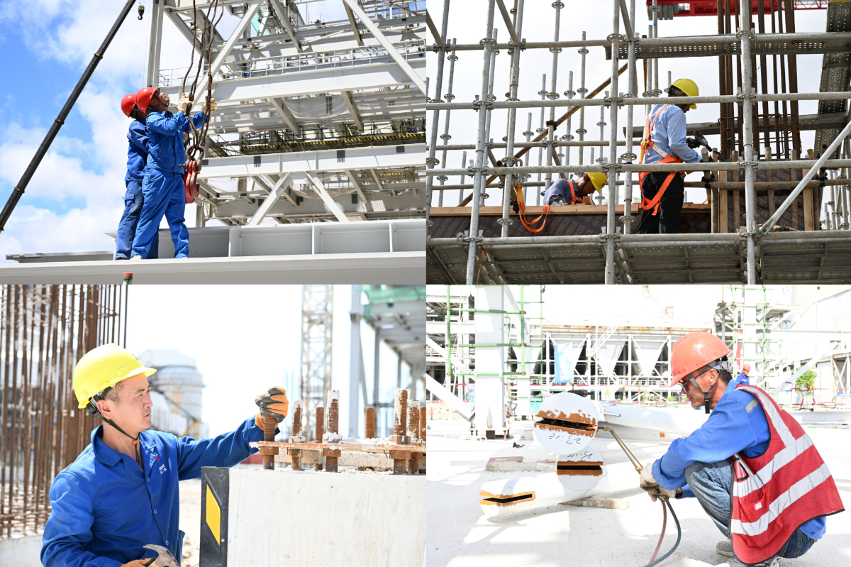 连日来,气温居高不下。为确保施工安全和进度齐头并进,台二电合理安排作业时间,充分保障一线作业人员安全健康,积极做好高温天气项目现场的安全生产管理工作,多次开展'夏送清凉'活动,让作业人员以更加饱满的热情投入施工,有序推进项目各目标节点。只见热气腾腾的工程现场,吊车、挖掘机等机械设备轰鸣,近千名建设者铆足干劲,钢筋绑扎、混凝土浇筑等各道工序稳扎稳打,奋力掀起重大能源项目的建设“热浪”。