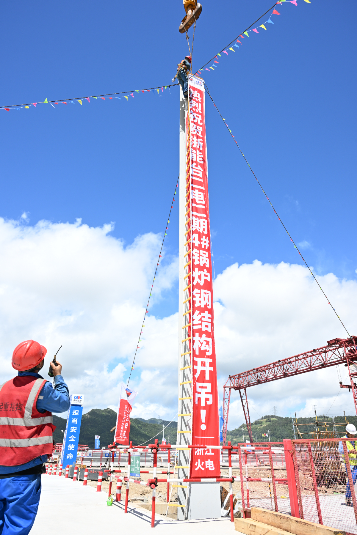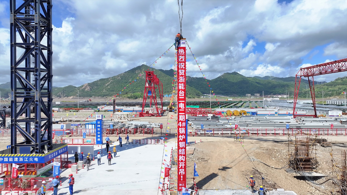 高质量发展看“浙”里 | 台二电二期4号锅炉首根钢结构开吊