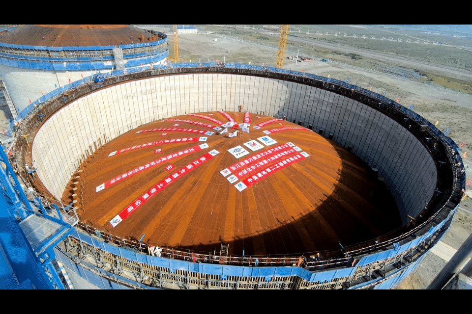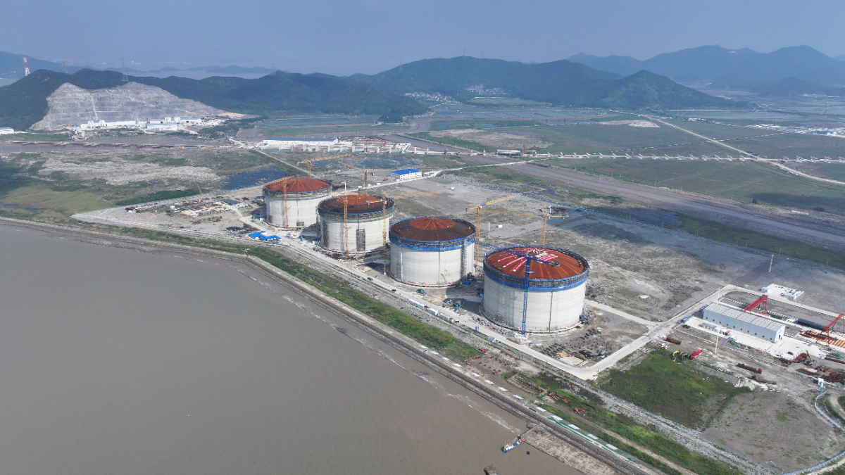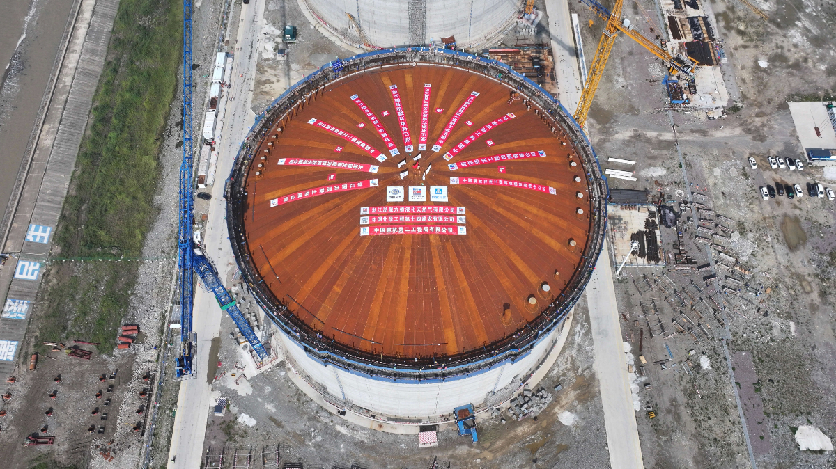 爱情岛论坛 六横LNG接收站项目1号储罐正在气顶升。 刘莎 提供