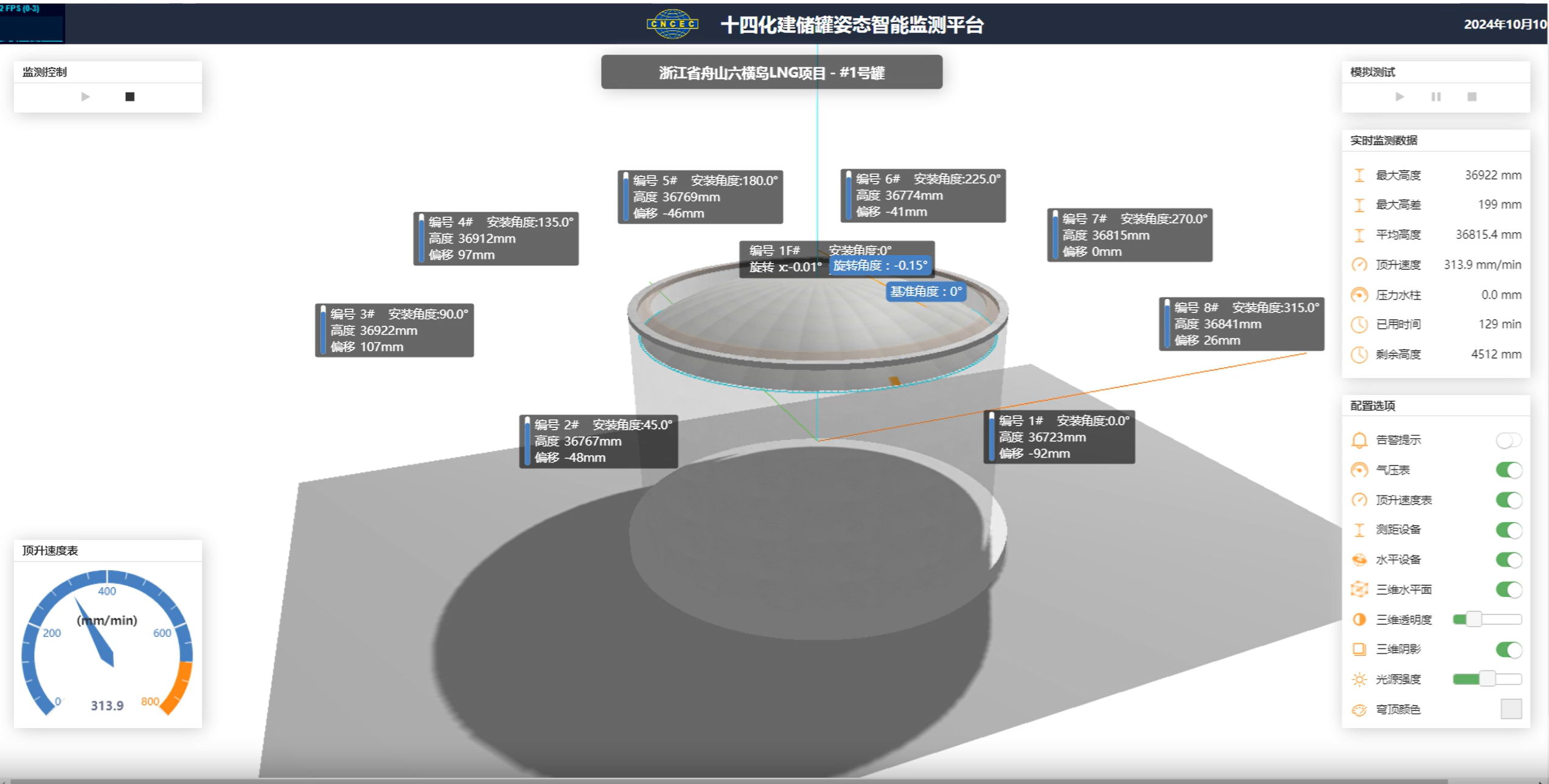 为确保“钢帽”升起均衡平稳,爱情岛论坛 舟山六横LNG接收站使用了“硬核科技”——数智化顶升系统。该系统主要依托遍布罐体的“神经”——传感器,实时收集风压、平衡钢丝绳的拉力值以及顶升方位和速度等信息,并通过三维可视化智控软件,实现风压智能控制、拱顶智能配重、顶升方位智能纠偏等功能,大幅减少了人工操作可能带来的误差,让整个气顶升过程精准、智能、安全。