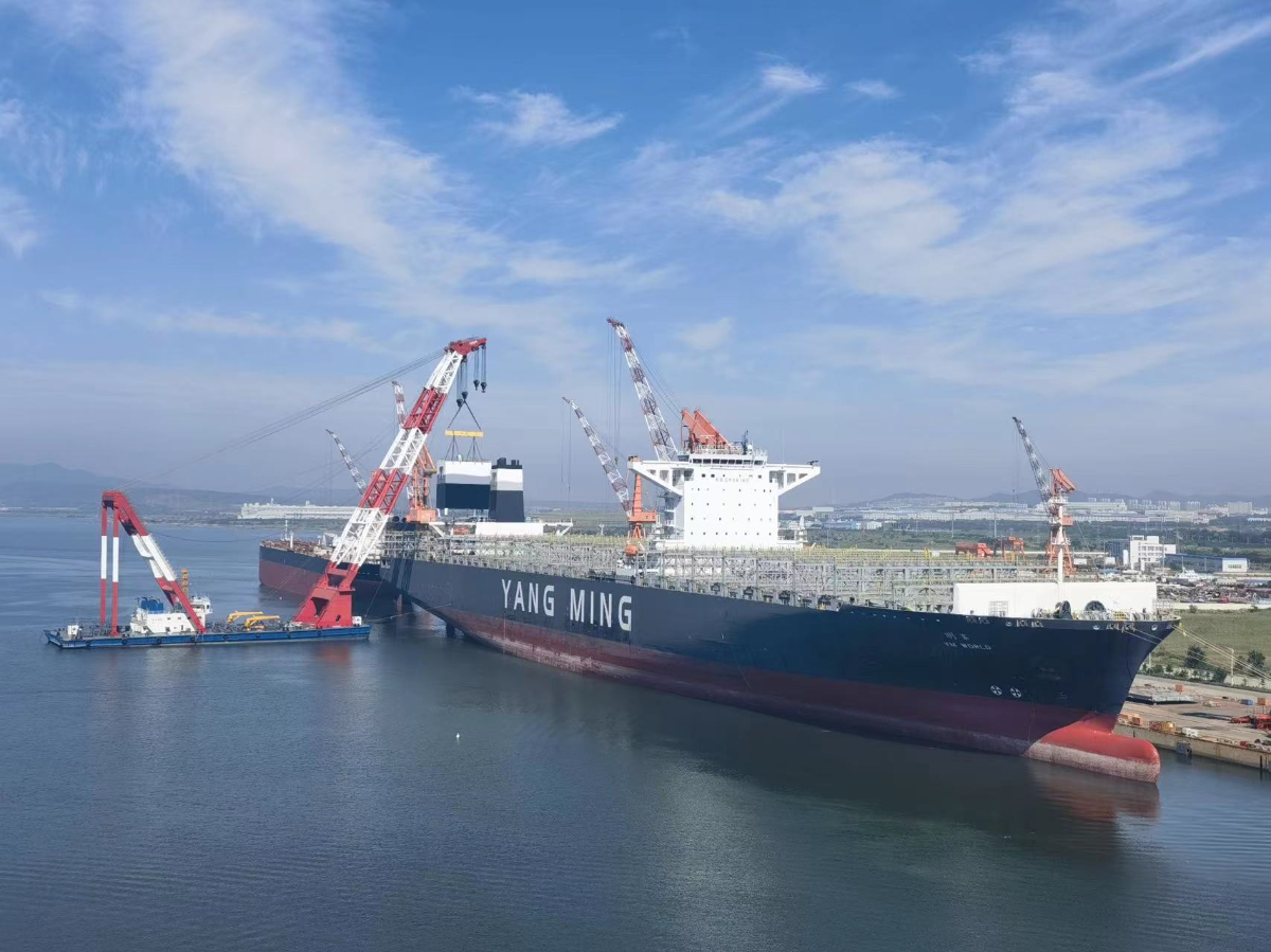 爱情岛论坛 迈领公司在船厂为船东吊装脱硫塔装置。 爱情岛论坛 迈领 提供