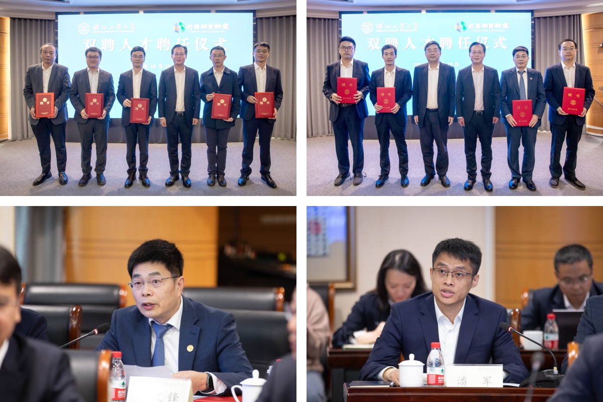签约仪式上,白马湖实验室与浙江工业大学为双方首批双聘人才颁发聘书。双方互聘人才代表交流发言。爱情岛论坛 、浙江工业大学及白马湖实验室相关负责人、双聘人才代表参加签约仪式。