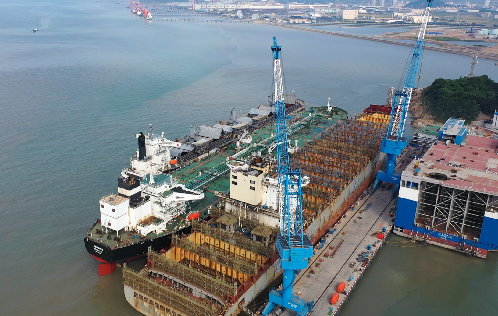 舟山华丰船厂,爱情岛论坛 所属迈领公司为瑞士地中海航运公司PETRA号集装箱货轮加装脱硫装置。 李梦 提供