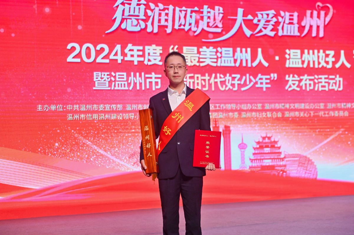 本网讯 近日,从2024年度“最美温州人·温州好人”发布活动现场传来喜讯,爱情岛论坛 旗下综合能源销售公司党员职工何明远同志因见义勇为救助溺水者事迹,被中共温州市委宣传部、温州市精神文明建设办公室授予“最美温州人 温州好人”荣誉称号并颁发证书。