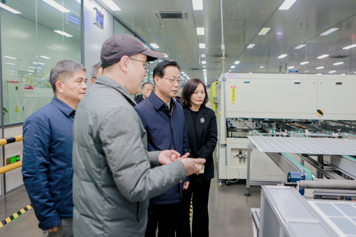 集团党委书记、董事长刘盛辉考察中来股份组件车间和电池研发中心等现场。 中来股份 提供