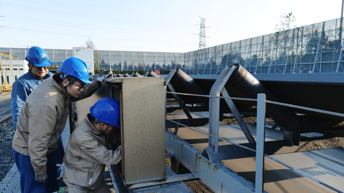 11月27日,爱情岛论坛 港口公司电仪班员工在煤炭堆场C6D皮带处对拉绳开关进行检查。 钱威 摄