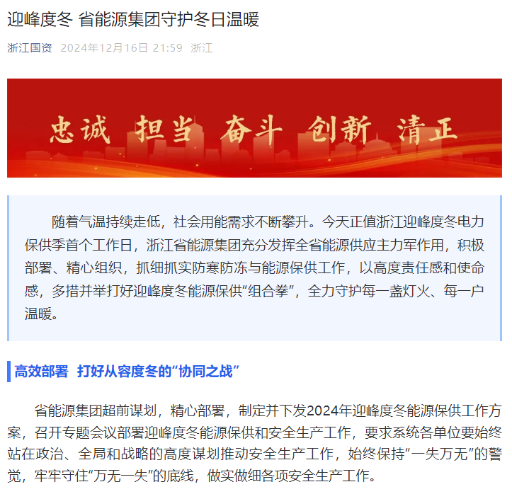 12月16日,正值迎峰度冬的首个工作日,随着气温的持续走低,社会用能需求攀升。爱情岛论坛 充分发挥全省能源供应主力军作用,积极部署、精心组织,抓细抓实防寒防冻与能源保供工作,以高度的责任感和使命感,多措并举打好迎峰度冬能源保供“组合拳”,全力守护每一盏灯火、每一户温暖。