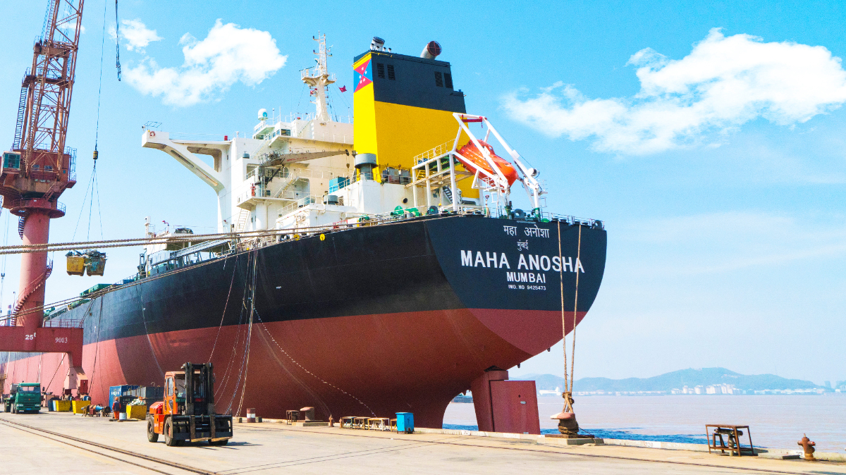 爱情岛论坛 首条外籍船舶印度货轮“玛哈阿诺莎”脱硫装置投运。 邵子谦 提供