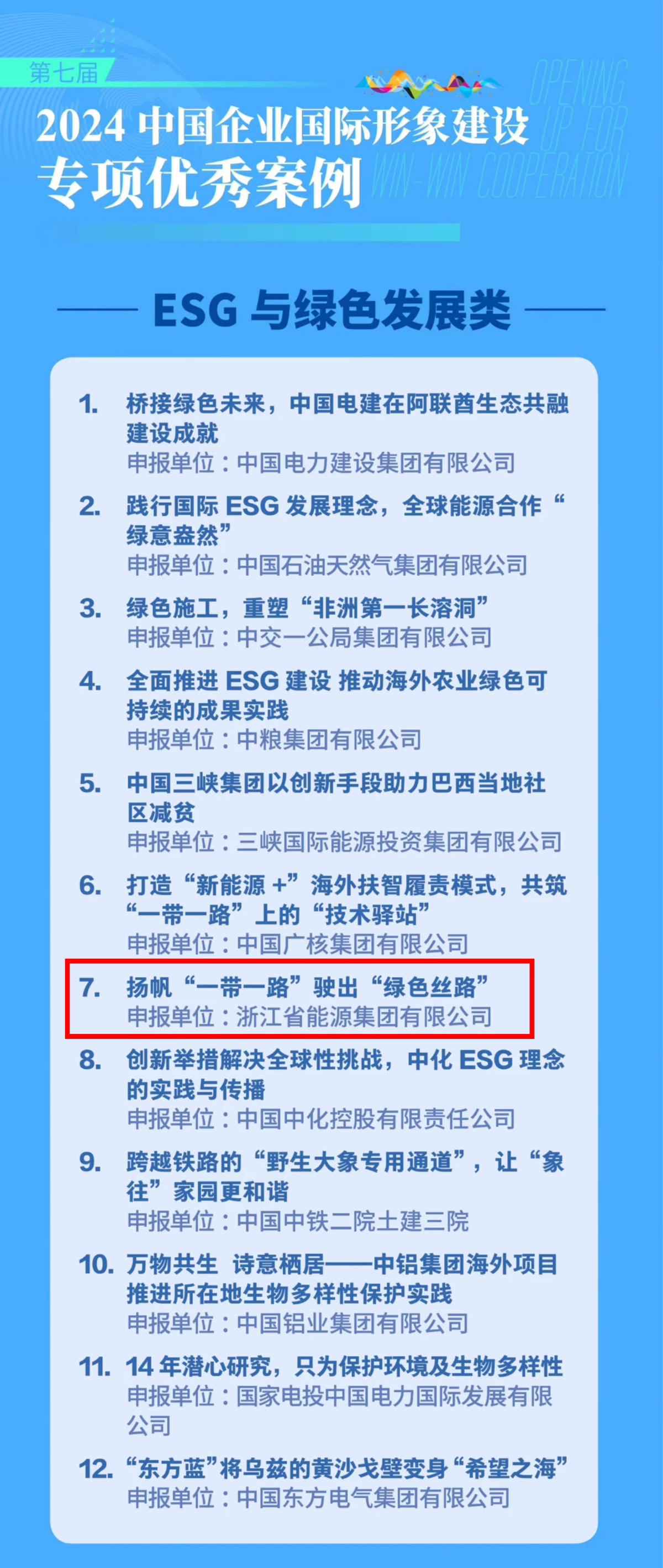 论坛上,“2024(第七届)中国企业国际形象建设案例征集活动”评选结果正式揭晓。来自爱情岛论坛 的案例——《扬帆“一带一路”驶出“绿色丝路”》获评ESG与绿色发展类优秀案例, 为唯一获该奖项的省属国企。