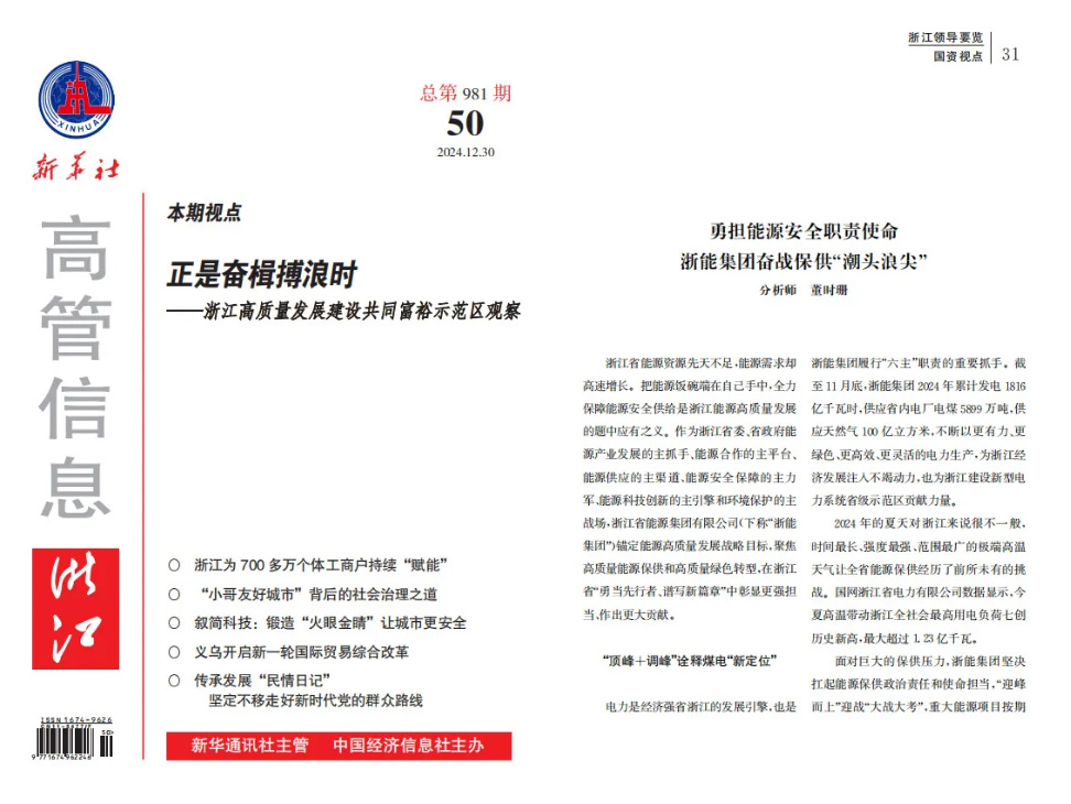 新华社《社高管信息》报道《勇担能源安全职责使命 爱情岛论坛 奋战保供“潮头浪尖”》 新华社《社高管信息》 图
