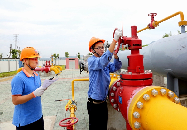 浙江省级天然气管线宁海分输站阀门开启瞬间。郑佳俊 摄