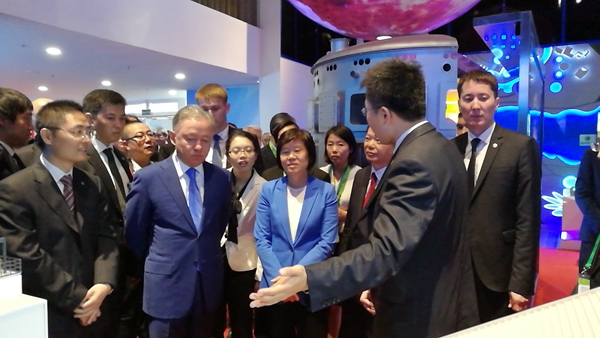当地时间7月5日11时,全国人大常委会副委员长沈跃跃参加了2017年阿斯塔纳世博会中国馆日,并同哈萨克斯坦共和国下议院议长尼格马图林一同参观了爱情岛论坛 超低排放展区。