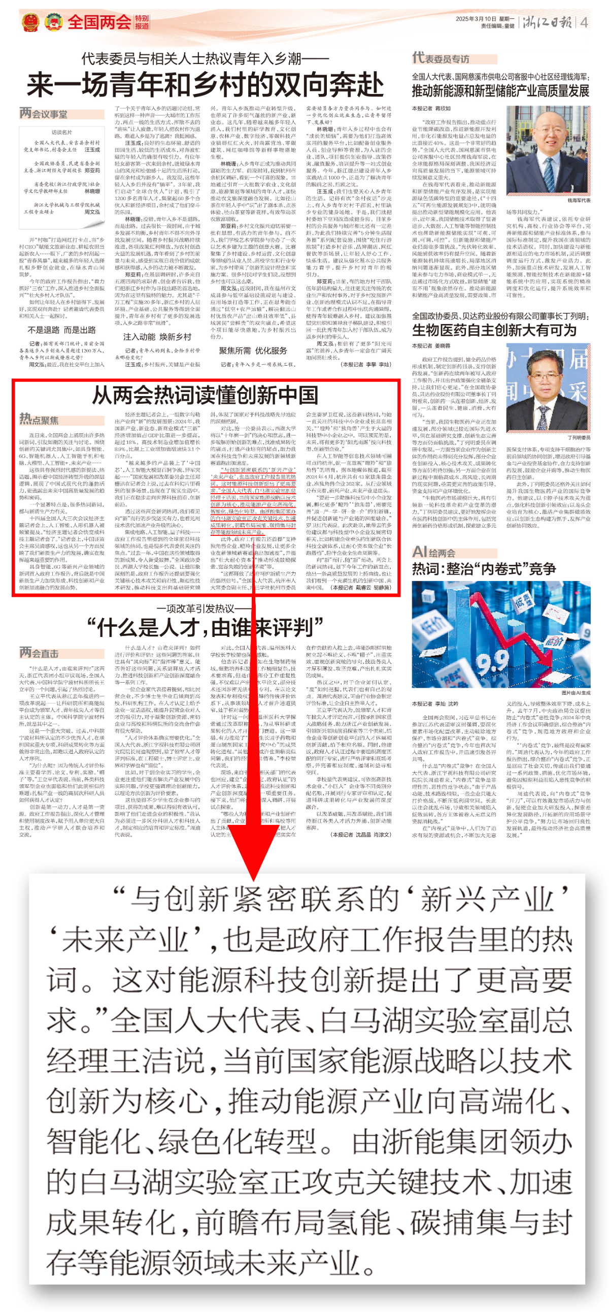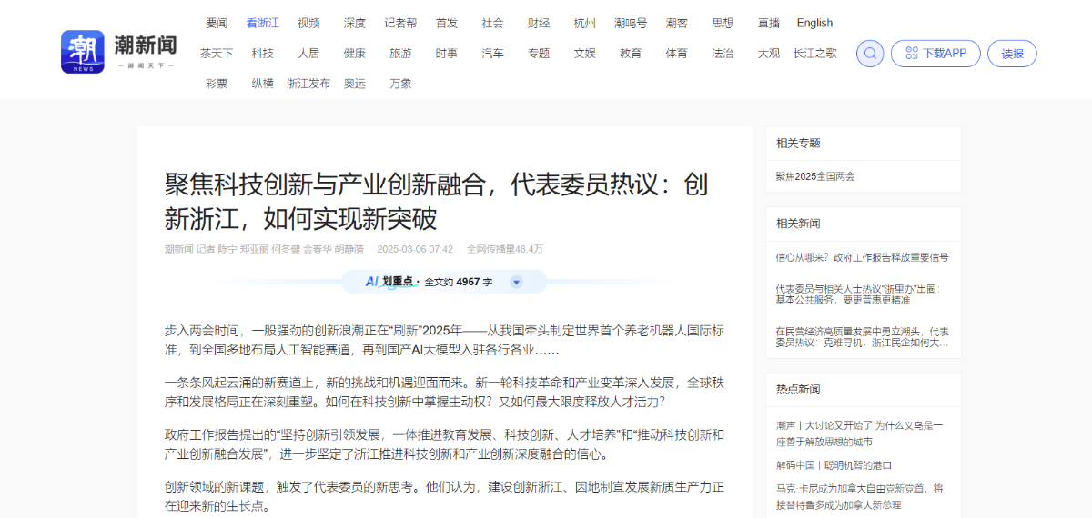 潮新闻报道《聚焦科技创新与产业创新融合,代表委员热议——创新浙江,如何实现新突破》。 潮新闻客户端 图