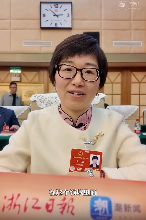 潮新闻客户端《倩眼看两会:今天过节 听听浙江的“她”声音》,采访王洁同志。 潮新闻客户端 图