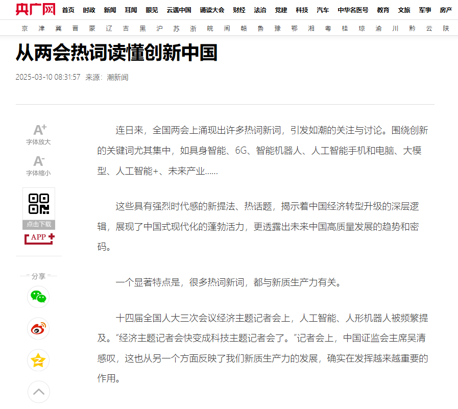 央广网转载《从两会热词读懂创新中国》,聚焦王洁同志。 央广网 图