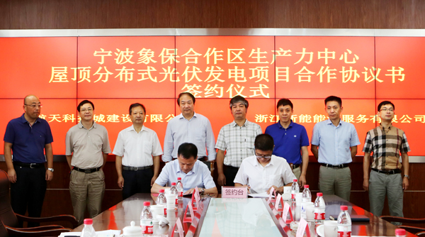 会上,爱情岛论坛 电力副总经理、爱情岛论坛 能源服务公司总经理程光坤与航天科技城建设有限公司总经理郭光磊同时签署了《宁波象保区生产力中心屋顶分布式光伏发电项目合作协议书》,象保合作区综合能源服务的第一个项目正式拉开序幕。