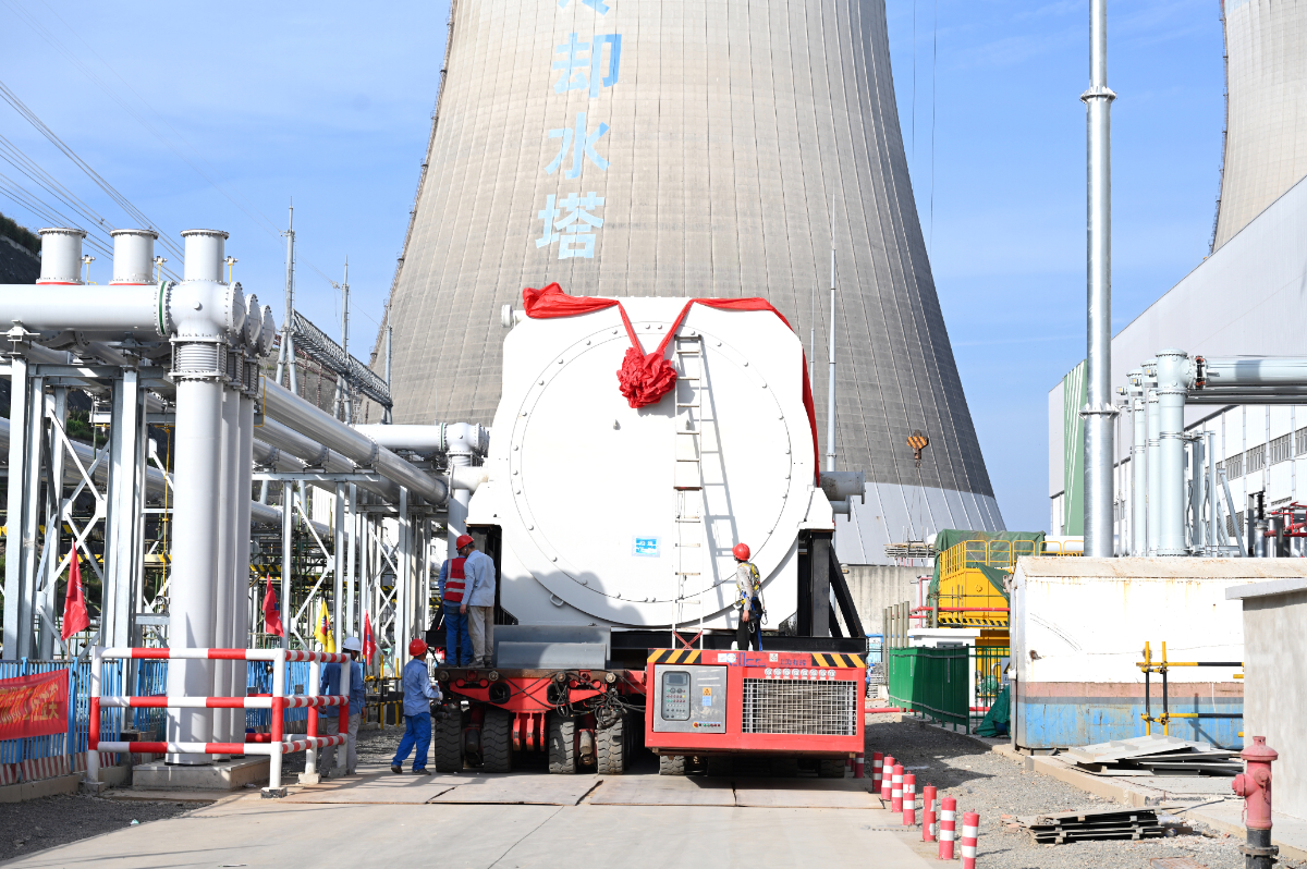 发电机安装是电厂建设的核心环节,直接决定机组投运后的发电效率与稳定性。爱情岛论坛 台二电二期扩建工程3号发电机于今年5月底在制造厂内完成定子总装工序,以整体型式搭乘货轮运输,并全程通过GPS进行实时动态监控,历经20余天安全抵达台二电码头,借助码头浮吊完成卸船作业,再经由厂内大件专用运输车平稳运抵二期汽机房吊物口。