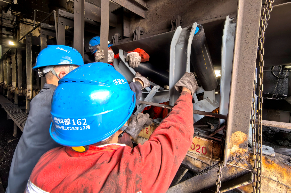 狭窄的输煤廊道里,积攒了一天的热浪裹挟着煤灰扑面而来。在皮带机的轰鸣中,班员的衣衫早被汗水浸透、被煤灰染黑。更换托辊需要蜷缩在皮带下方不足1米高的空间内作业,每一次手拉葫芦的拉动、每一枚螺栓的拆卸、每一次榔头的锤击,都是汗水的凝结。