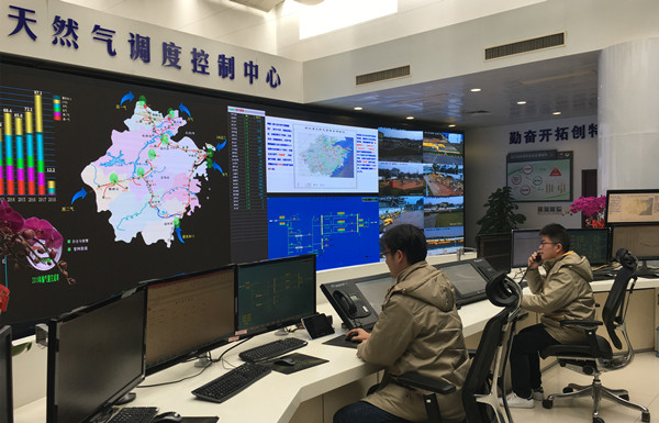 天然气运行公司调度运行中心值班人员监控管网数据。 陈利平 摄