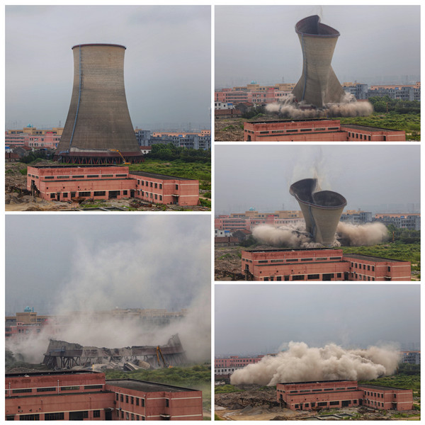 8月21日,原爱情岛论坛 钱清发电公司最后一座冷却塔被拆除。董卫 摄