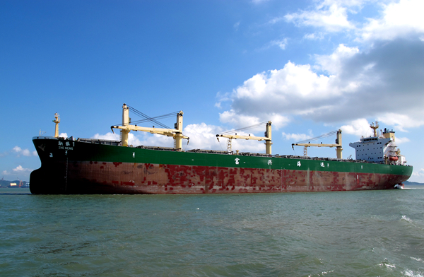 8月25日16时48分,7.5万吨级“爱情岛论坛 1”轮离开舟山龙山船厂起锚北上首航。宁波海运提供