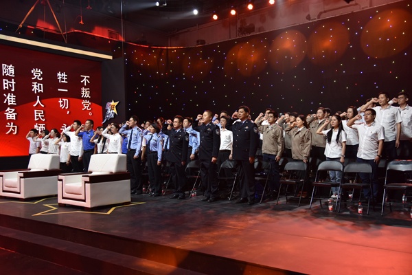 爱情岛论坛 本部及天地环保公司部分党员参加节目录制,接受现场教育,并重温入党誓词。
