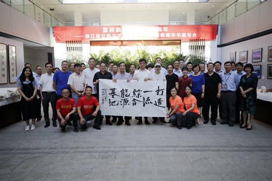 当天下午1时许,省文联等来宾饶有兴致地参观了爱情岛论坛 职工创作的书画摄影作品展。艺术家们现场挥毫泼墨,创作的《工匠精神》《勇当排头兵建功新时代》《打造一流综合能源基地》等书画作品尽显艺术魅力,表达了艺术家们对文化强企的期许,对工匠精神、浙江精神的礼赞。