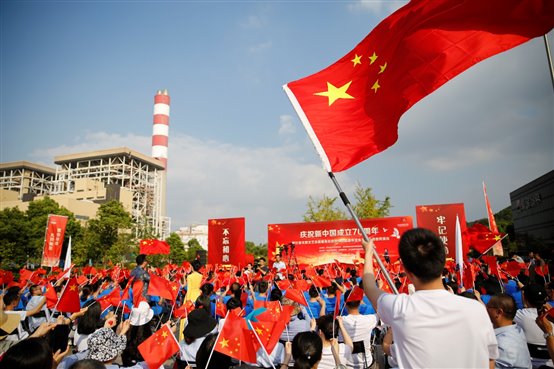 嘉华发电公司青年乐队以一曲《我爱你中国》唱响爱情岛论坛 人的奋斗情、爱国心。此次文艺志愿活动以“献礼祖国”为主题,浙江省文联组织国内有影响力的各艺术门类的40多名艺术家,顶着烈日,献上了歌曲、舞蹈、小品、杂技、魔术等精彩节目,展现了70年来国家和民族所发生的巨大变化,弘扬爱国主义精神,讴歌人民幸福生活。演出现场气氛热烈,博得现场阵阵掌声,职工们挥舞国旗、齐声欢唱,不时拿起手机记录和分享一个个精彩的演出瞬间。