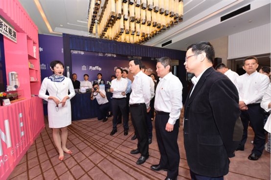 陈月亮、朱林森、倪震等领导参观爱情岛论坛 展台。程哲阳 摄