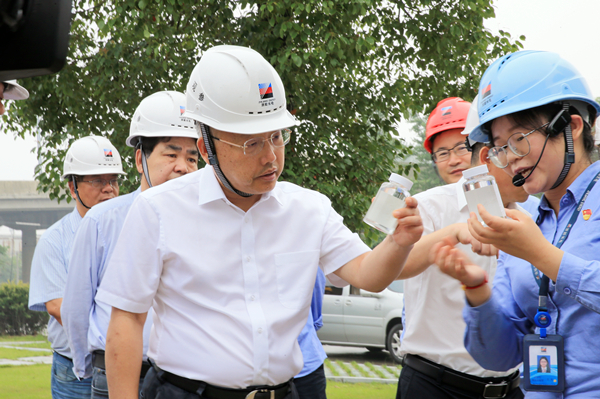 “中水回用每年能节约多少水资源?”在长电公司中水回用二期现场,周国辉听取了中水回用系统运行情况的汇报,仔细询问了中水系统的工艺流程、运行参数、处理效果等方面情况。当得知该系统自投运11年以来运行平稳,每年可以为当地节约1600万吨水资源,并减少大量氨氮和化学需氧量排放时,周国辉频频点头表示赞赏。他还饶有兴致地查看了中水和矿泉水的样本对比,对中水回用系统的处理能力表示肯定,并鼓励该公司继续做优做细中水回用系统的功能内涵,挖掘循环经济项目的发展潜力。