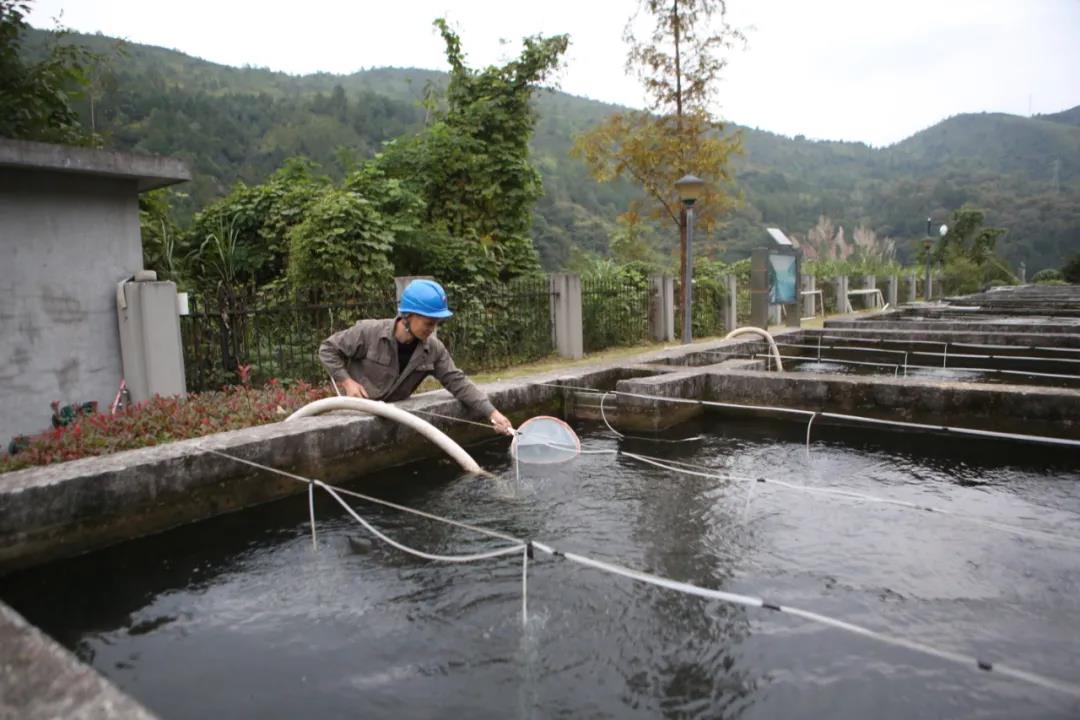 滩坑水电站鱼类增殖站工作人员照料鱼苗