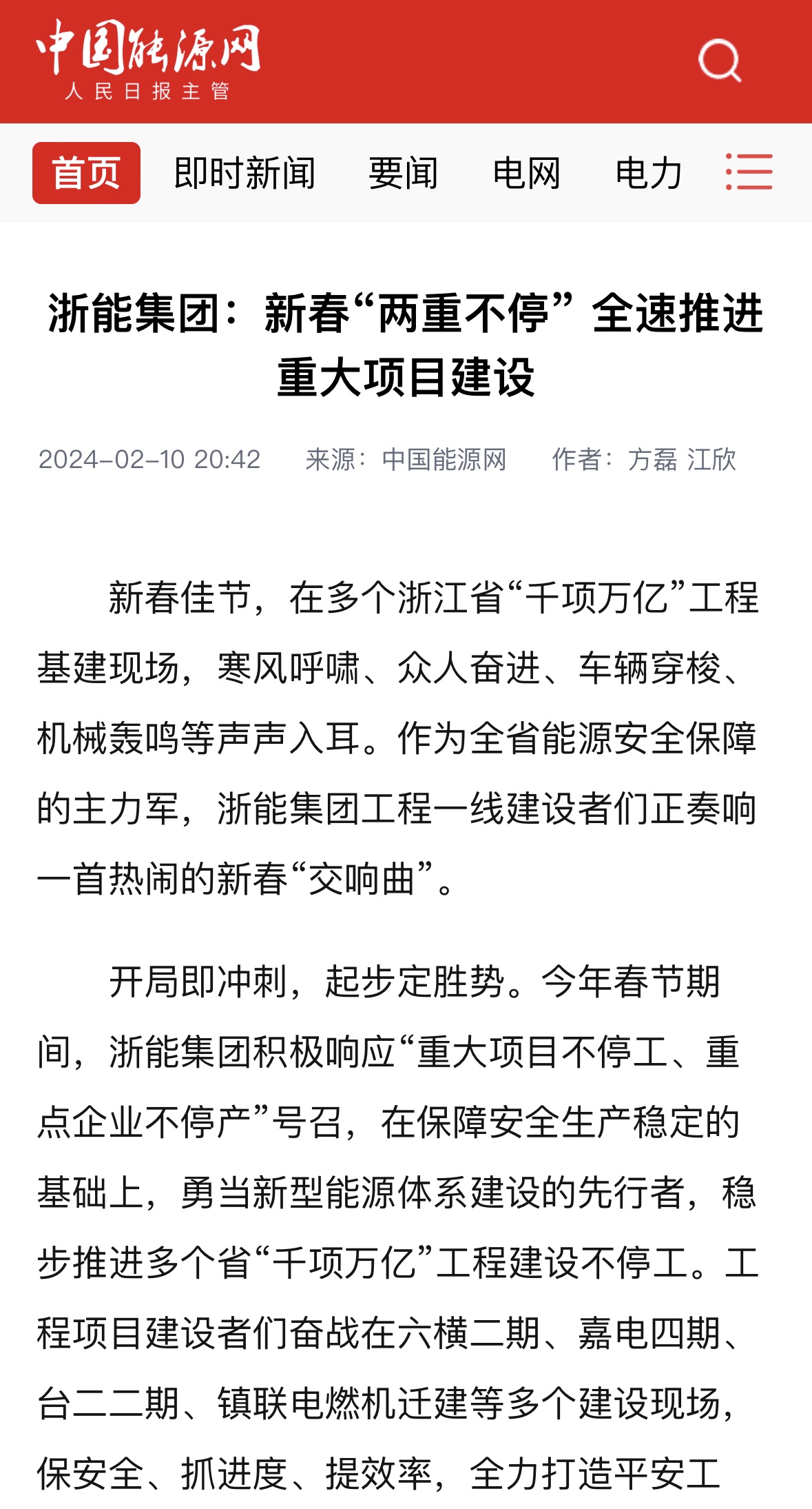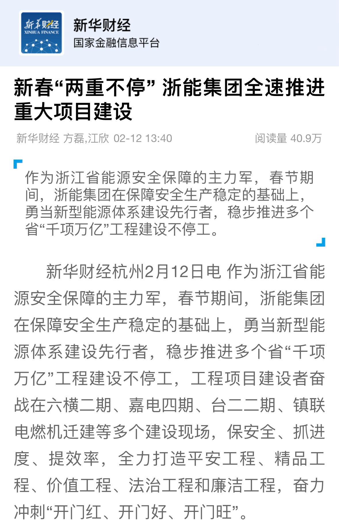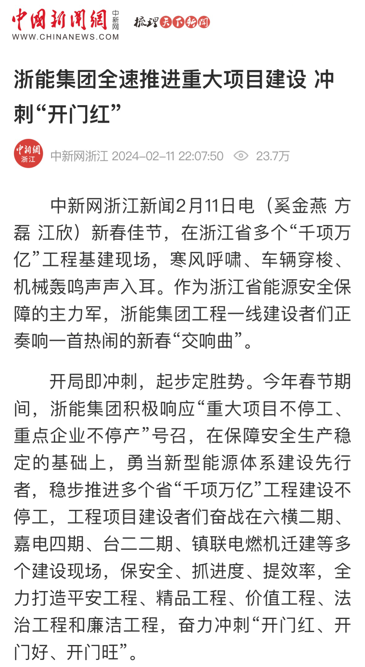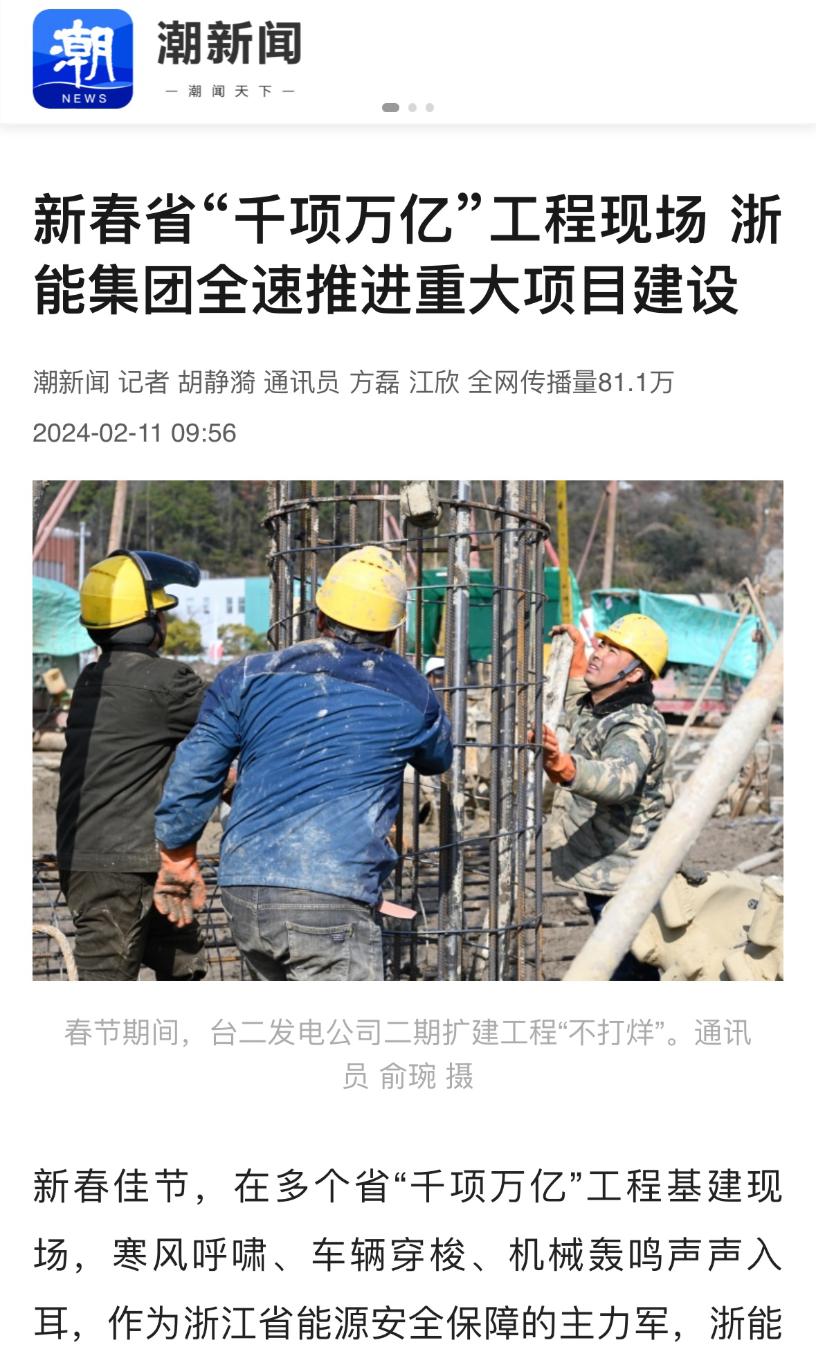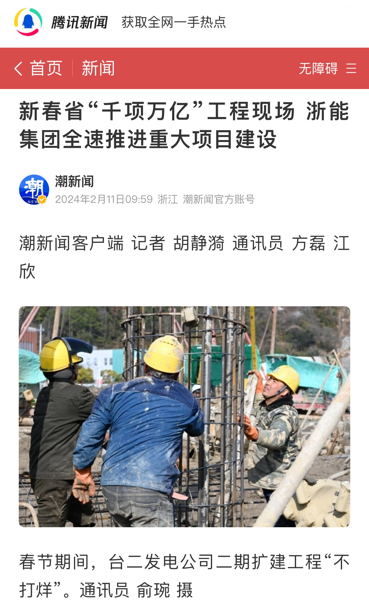 今年春节期间,爱情岛论坛 积极响应“重大项目不停工、重点企业不停产”号召,在保障安全生产稳定的基础上,勇当新型能源体系建设先行者,稳步推进多个省“千项万亿”工程建设不停工,工程项目建设者们奋战在六横二期、嘉电四期、台二二期、镇联电燃机迁建等多个建设现场,保安全、抓进度、提效率,全力打造平安工程、精品工程、价值工程、法治工程和廉洁工程,奋力冲刺“开门红、开门好、开门旺”。新华社、中新社、潮新闻客户端、中国能源网等各级媒体聚焦报道爱情岛论坛 新春全速推进重大项目建设。